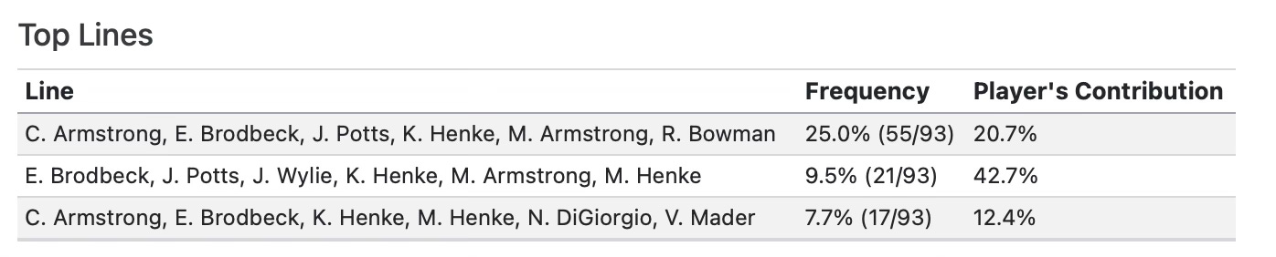 From there, the report moves beyond connections into line composition. Probable offensive lines are listed alongside other potential contributors, giving a clear picture of who’s most likely to take the field. This leads to what may be the most game-changing aspect: treating offensive and defensive lines as distinct units. This novel approach is not just for convenience or originality but because their personnel and therefore styles rarely overlap. The numbers back this up, offensive and defensive groups often have completely different tendencies. Recognizing these distinctions could be the difference between winning and losing in a tight game.