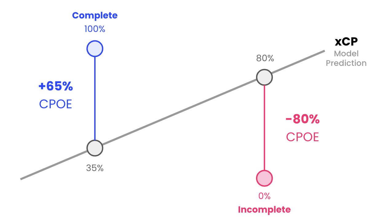 Evaluate Thrower Performance with xCP and CPOE: Just like yards, not all completions are created equal—and Expected Completion Percentage (xCP) and Completion Percentage Over Expected (CPOE) are designed to capture that nuance.